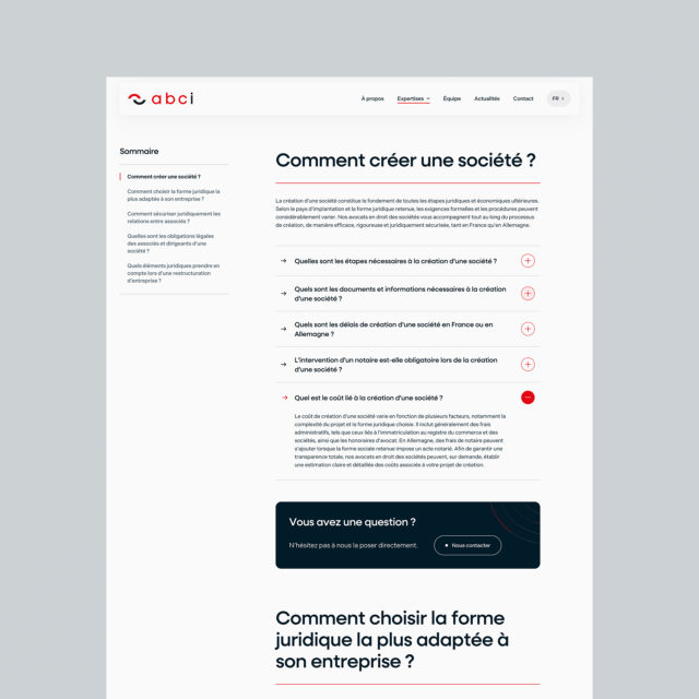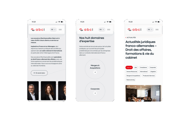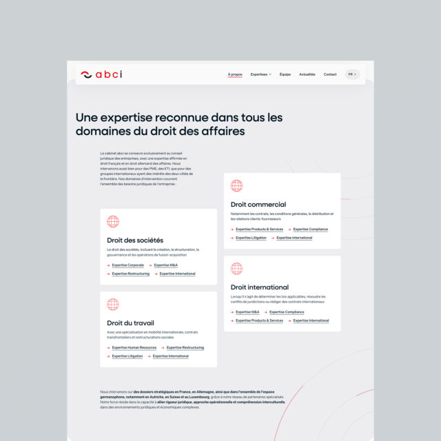 Refonte graphique et technique du site internet d'abc International, cabinet d'avocats en droit des affaires implanté à Kehl et Strasbourg.